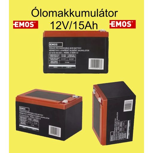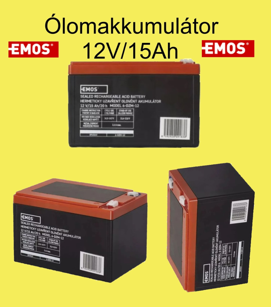 12V 15Ah zárt savas elektromos kerékpár akkumulátor Emos F2 csatlakozóval
