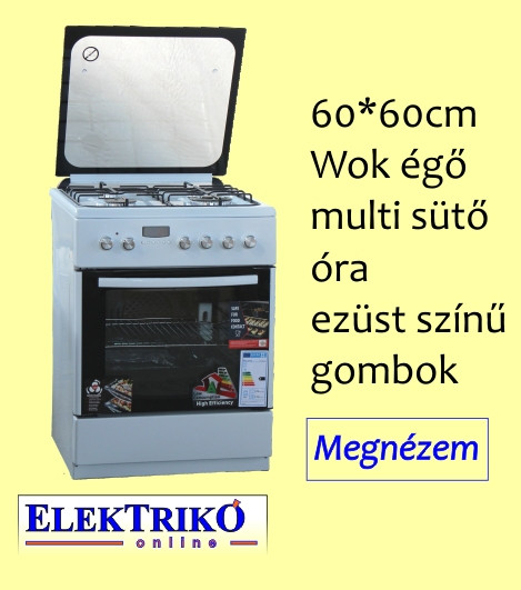 Savaria FF6406GAZW kombinált tűzhely, fehér, WOK égővel , 60 cm széles
